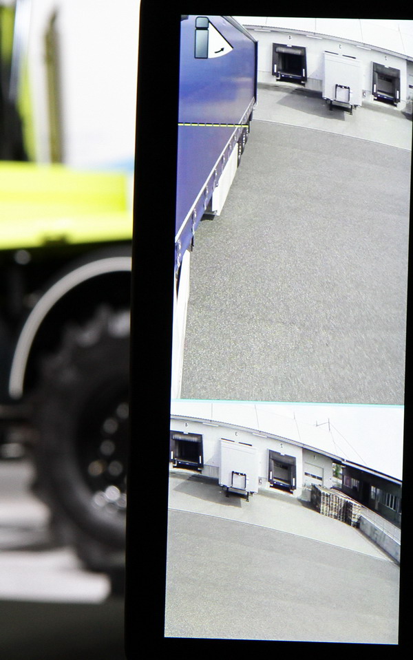 Eine weitere Funktion sorgt für mehr Sicherheit der Ladung. Mittels durchgehender Überwachung der Kameras des Seitenraums rund um den Auflieger, kann der Fahrer während der Pausen- und Ruhezeiten auch bei geschlossenen Gardinen nach draussen schauen und sogar automatisch informiert oder gewarnt werden.