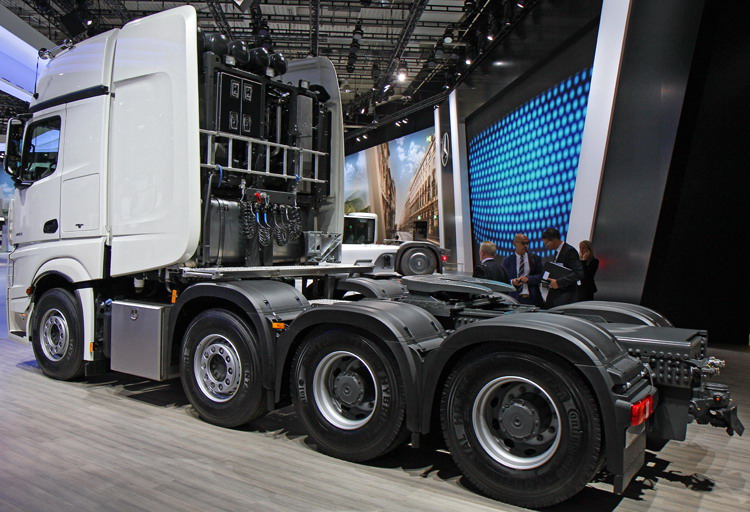 Markantestes Detail ist die wesentlich größere Spurbreite zum Serien-Actros.