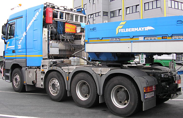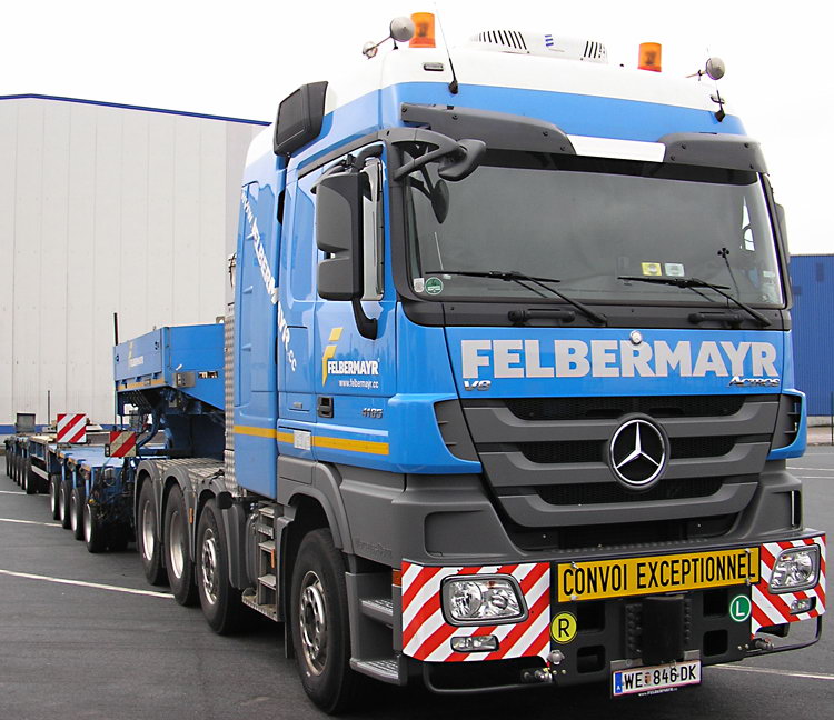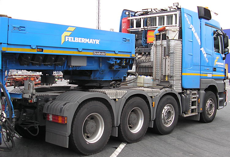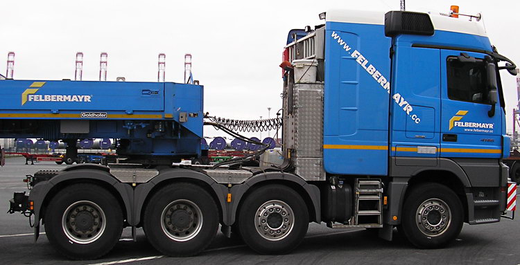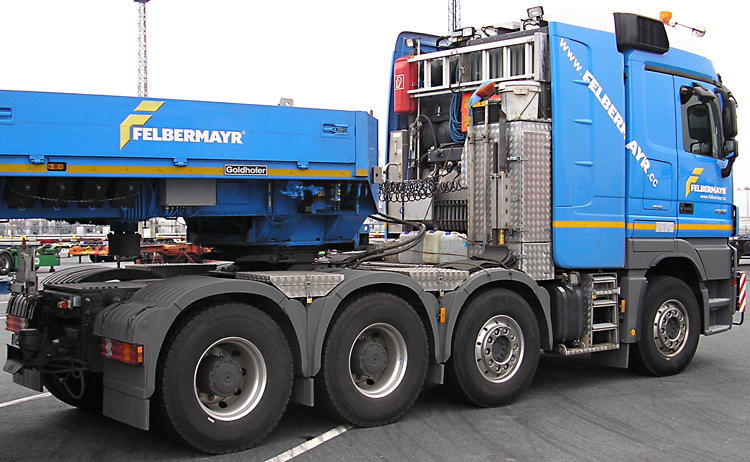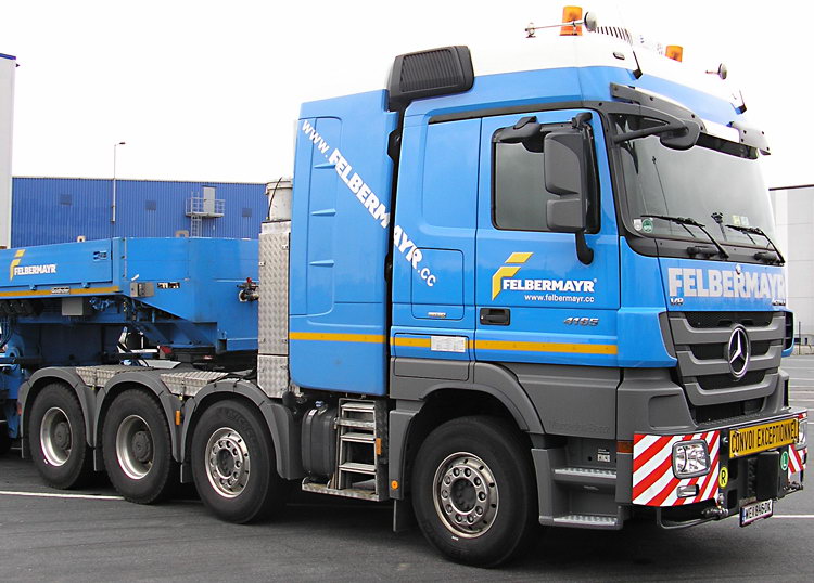 Dieser aktuelle Actros mit großem Fahrerhaus besitzt die leistungsstärkste Motorisierung.