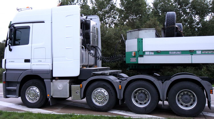Da vorne die Registerkupplung fehlt, wird dieser Actros nur als Sattelzugmaschine fahren.