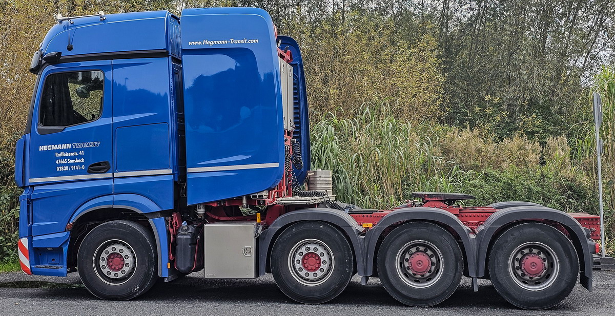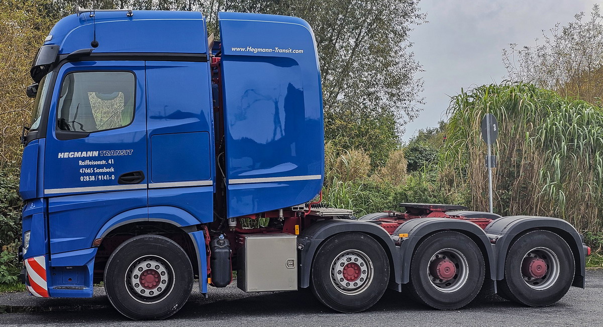 Es müsste sich in der ersten Jahreshälfte 2022 ergeben haben, dass insgesamt vier neue Actros SLT 4153 in den Hegmann-Fuhrpark gekommen sind.