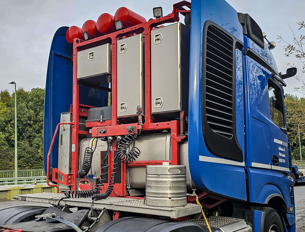 Als Zugmaschine für das Ersatzteil-Gespann wurde ein Mercedes Actros SLT 4153 eingesetzt.