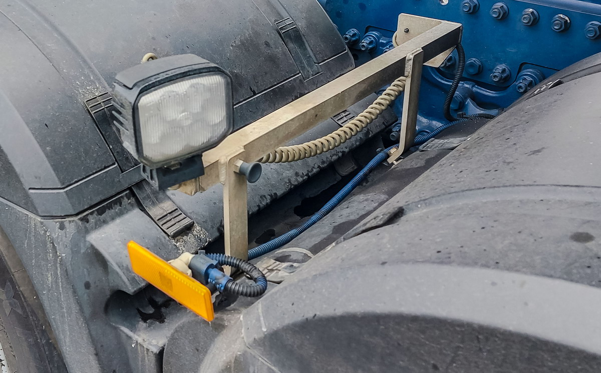 Der Dachbügel mit großen Zusatzstrahlern und Rundumleuchten gehört fast zur Pflichtausstattung im Schwerlastbereich