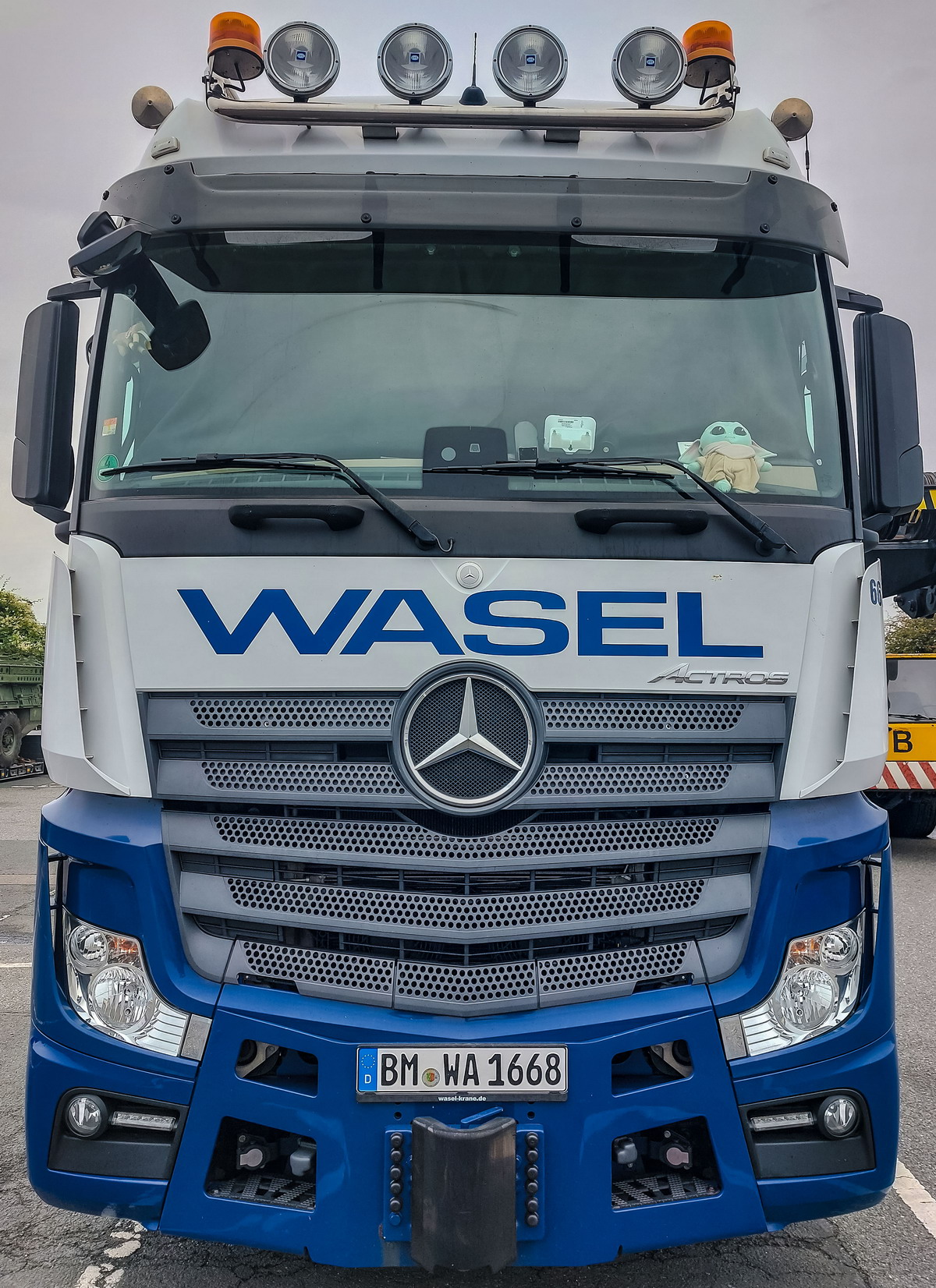 Alle Schwerlast-Zugmaschinen von Wasel, die mir vor die Kamera kamen, waren klassisch mit Außenspiegeln ausgestattet.