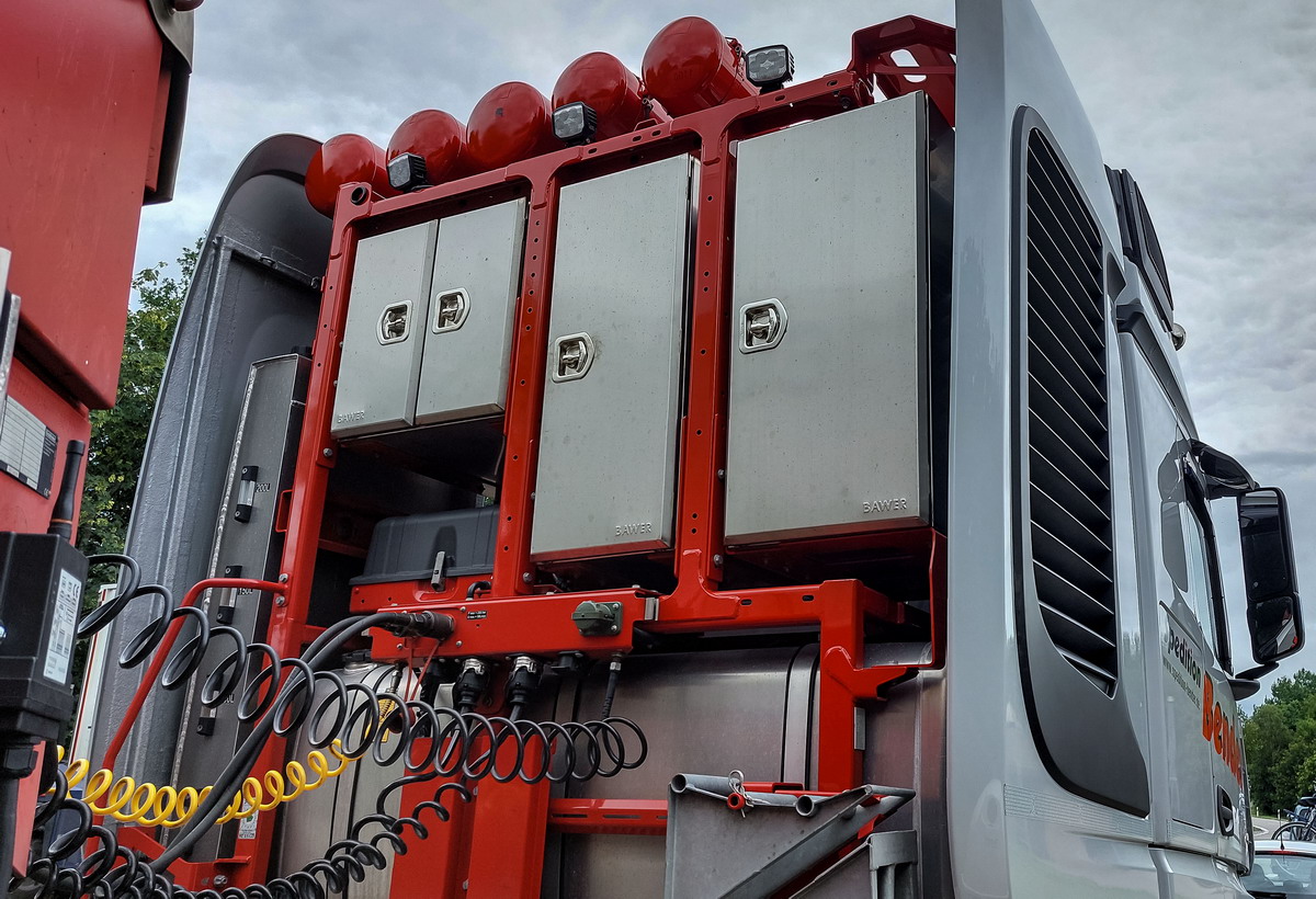 Zurück zum Truck, der natürlich mit Zusatzstrahlern bestückt wurde, um bei Nachtfahrten den Seitenraum auszuleuchten.