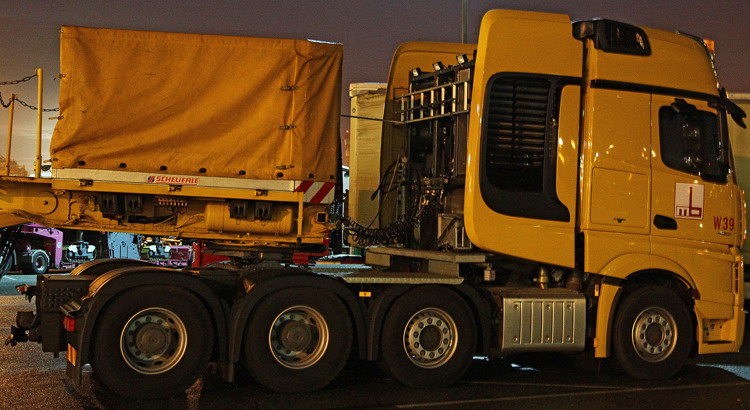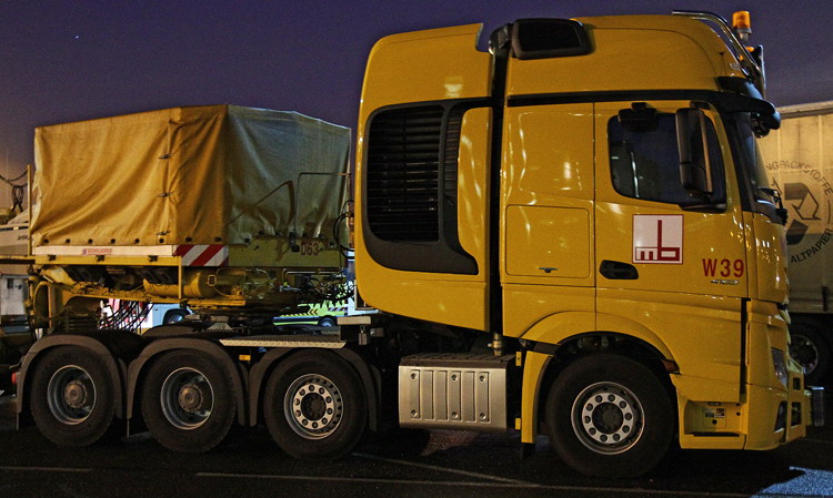 Mindestens vier weitere neue Actros SLT mit einem erlaubten Gesamtzuggwicht von 160 Tonnen müssten im Moment ebenfalls mit den gleichen Logos auf den Straßen unterwegs sein.