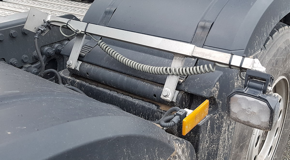 Hinter der Vorlaufachse wurden auf beiden Seiten ausziehbare Zusatzstrahler montiert.