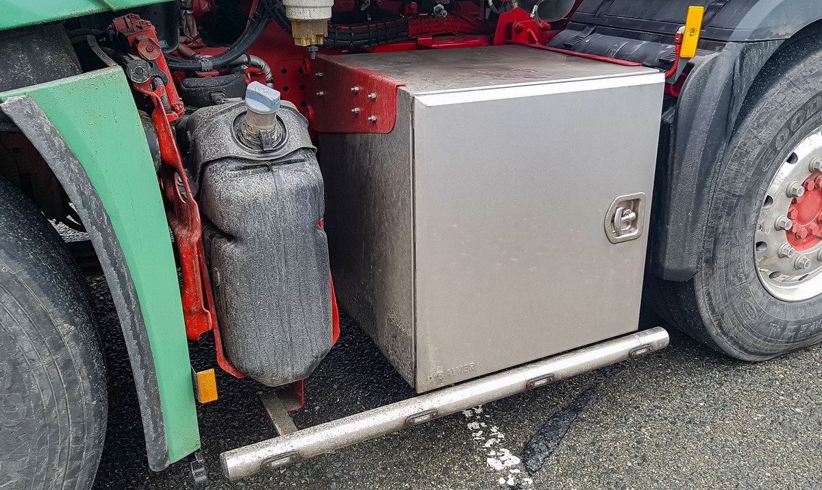 Auch unter dem AdBlue-Tank und dem Staufach ist eine Lobar mit vier LED-Einheiten montiert worden.
