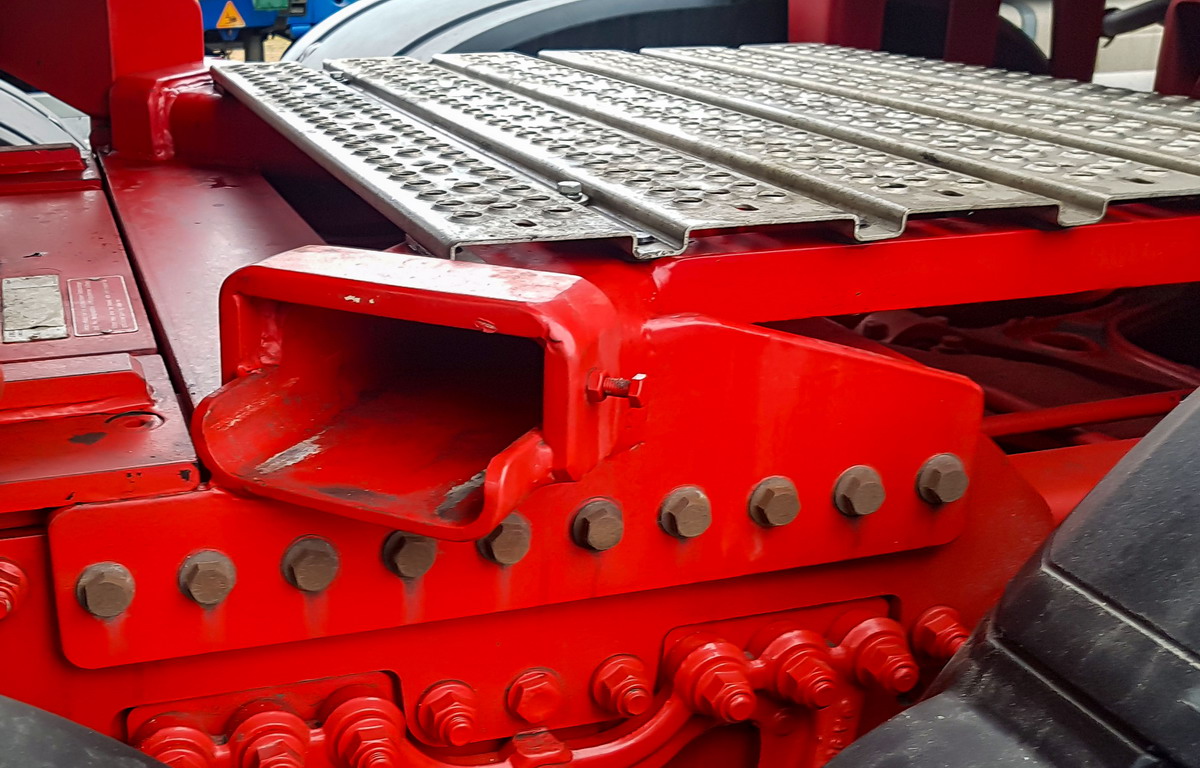 Auf der rechten Seite fehlte die vordere Containerverriegelung zwischen Sattelplatte und Laufsteg.