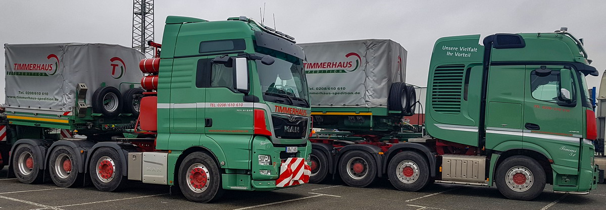 Im März 2018 standen diese beiden Schwertransportgespanne, leider schon entladen, im Bremerhavener Hafen.