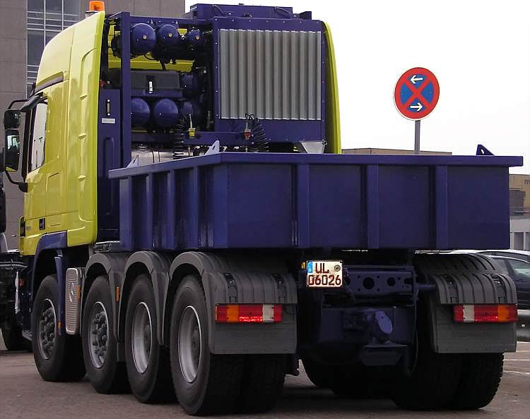 Im Spätsommer 2006 kamen zwei auffällig lackierte Schwerlast-Mercedes zur Verschiffung in Bremerhaven an, die sich nur in Details voneinander unterschieden haben.