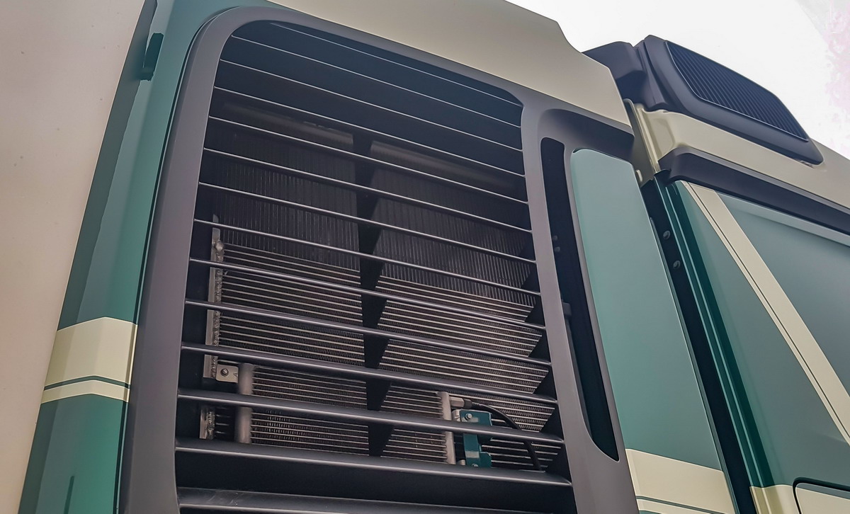 Der Blick auf die rechte Seitenverkleidung zeigt, dass dieser Arocs auch für schwerste Lasten zugelassen ist.
