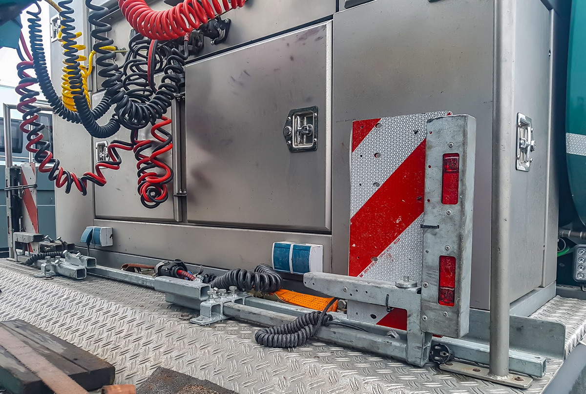 Für die sichere Beladung gibt es klappbare Abstützungen am Heck der Auflieger.