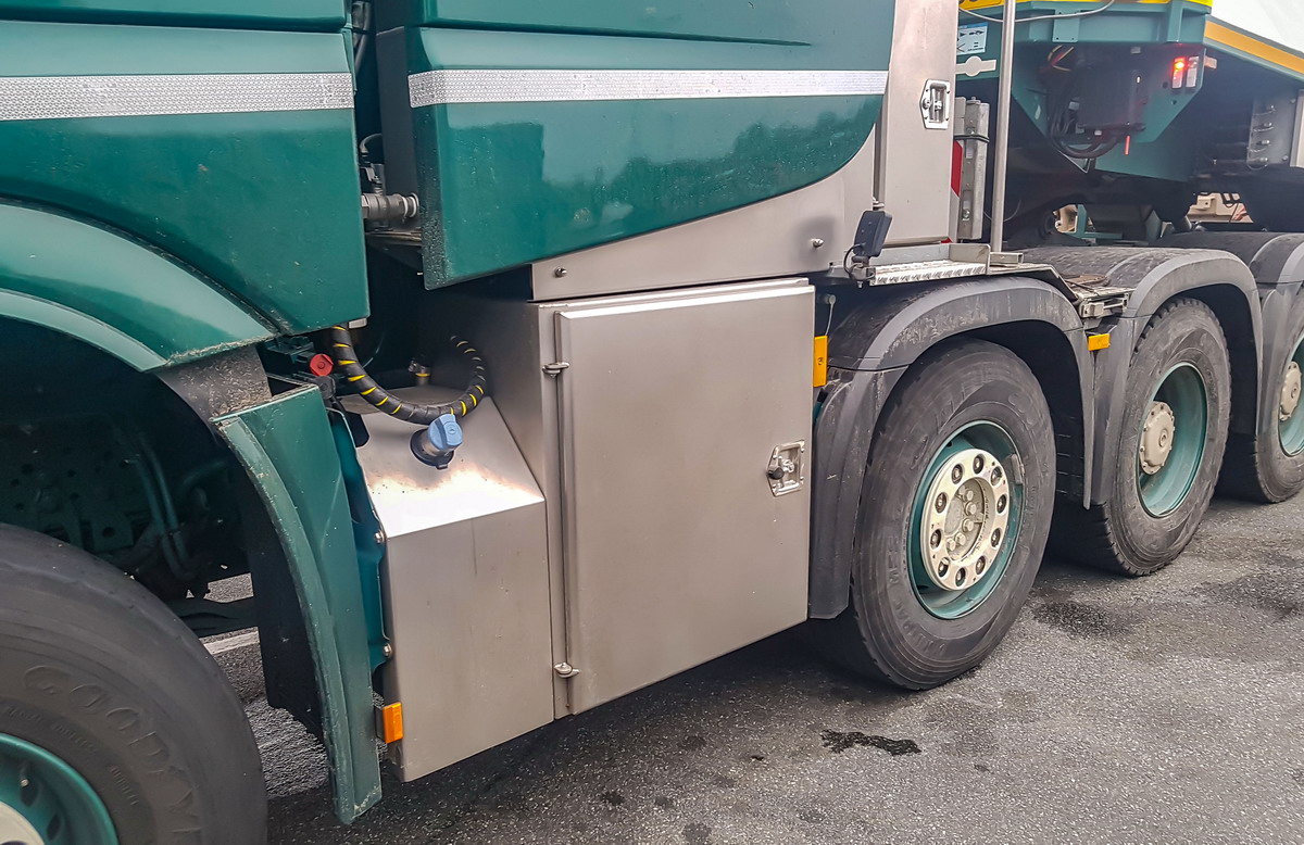 Stimmt nicht ganz: Neben dem AdBlue-Tank wurde eine weitere Ablage untergebracht, die auf die Schnelle erreichbar ist.