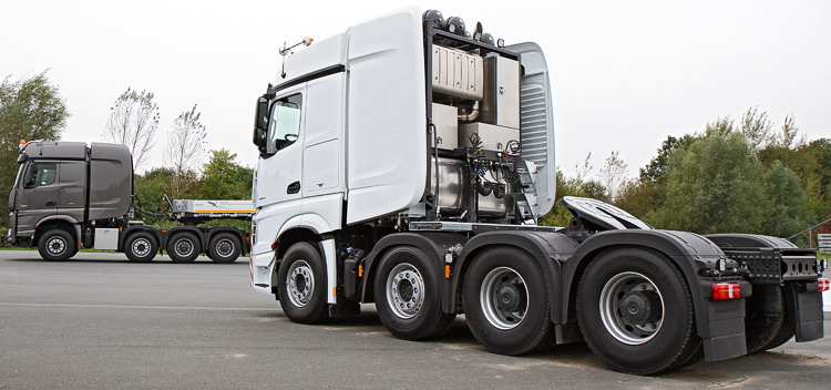 Immerhin 250 Tonnen Gesamtzuggewicht sind für diesen Mercedes kein Problem.