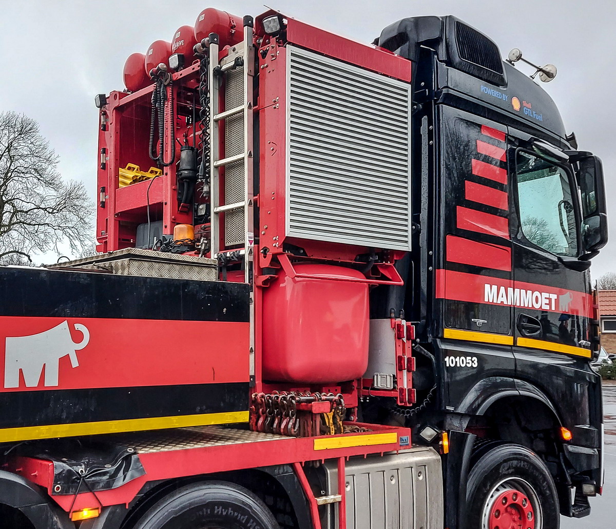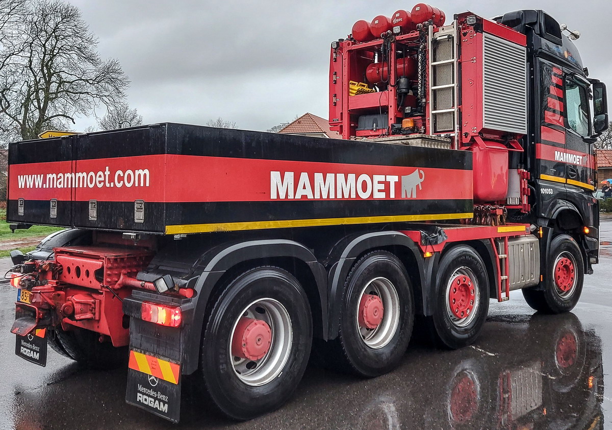 Aus Molsheim in bekannter Ausführung im Dezember 2018 geliefert, wurden zwei weitere Arocs SLT 4163 bei Rogam identisch und den Mammoet-Vorgaben entsprechend umgebaut und ab Februar 2019 in Dienst gestellt.
