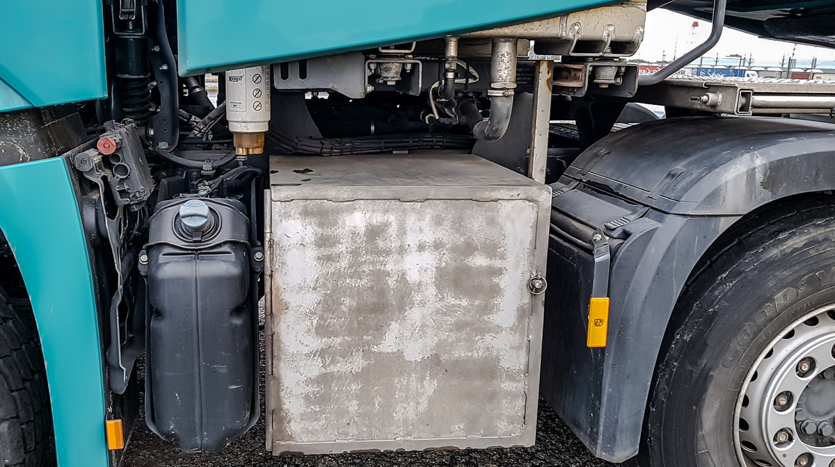 Der Weg zu den Aufliegeranschlüssen ist über die ausziehbare Leiter auf der Fahrerseite erreichbar.