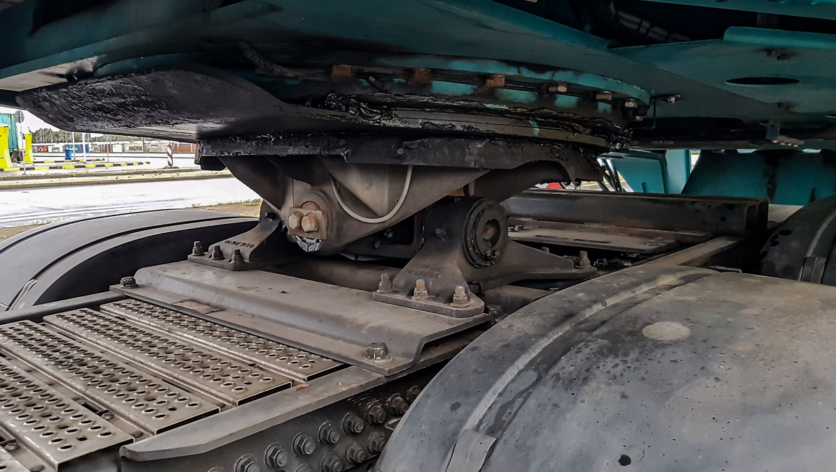 Da scheinbar immer mit dem gleichen Schwanenhals gefahren wird, benötigt der kardanisch aufgehängte Sattelteller keine Verschiebeeinrichtung auf dem Rahmen.