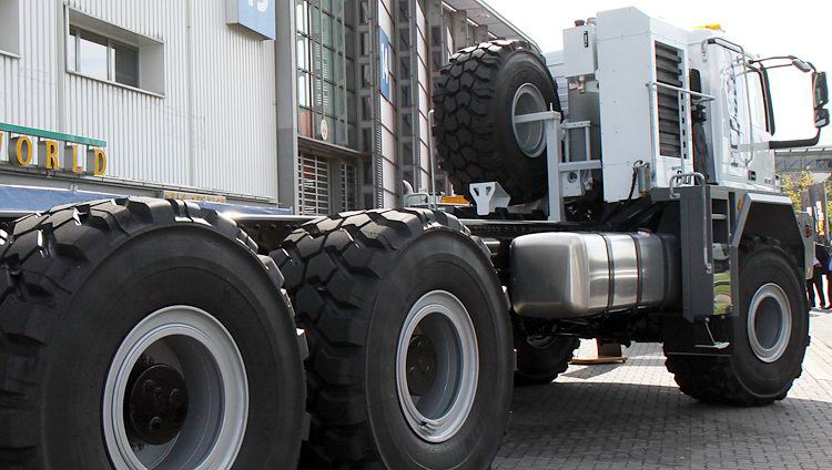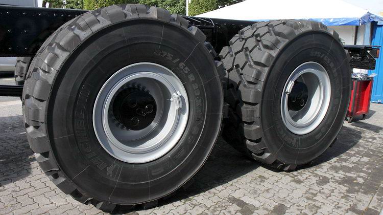 Auf den Hinterachsen drehen sich Michelin-Gummis im Format 875 / 65 R 29.