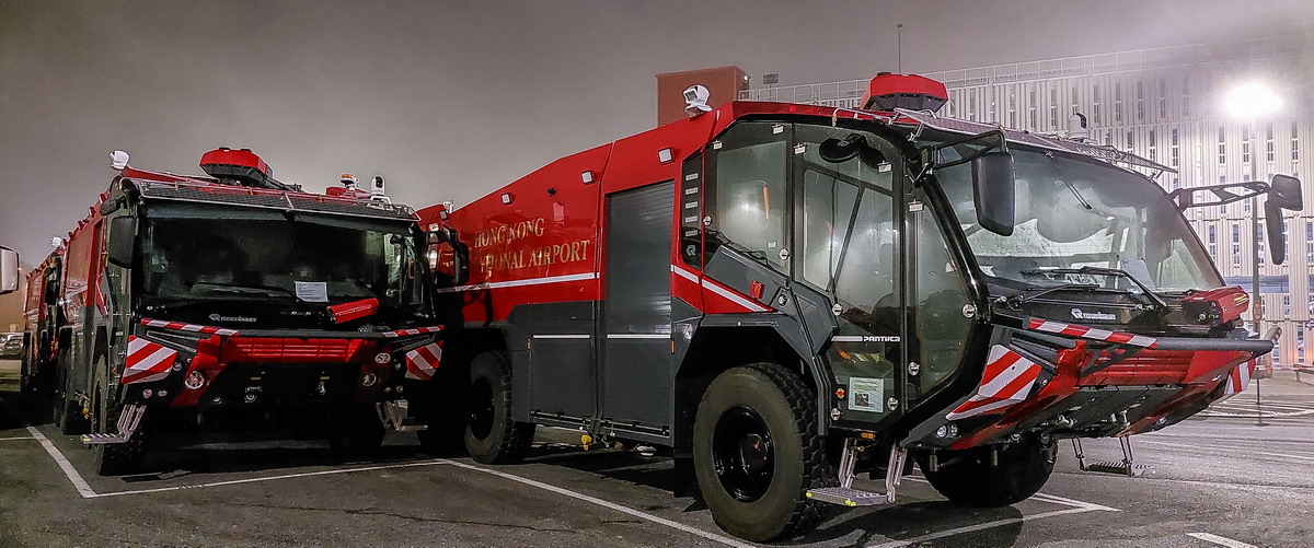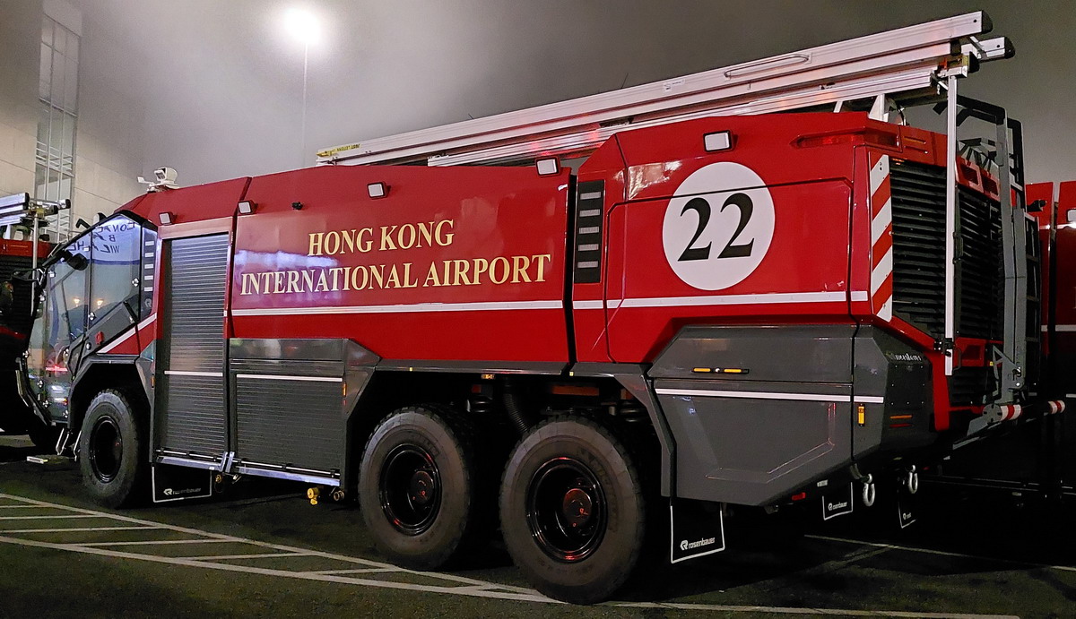Im Frühjahr 2022 kamen gleich mehrere nagelneue Flugfeldlöschfahrzeuge in der Nacht im Bremerhavener Hafen an.