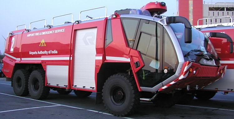 Gleich vier nagelneue Löschfahrzeuge von Rosenbauer traten in Bremerhaven die Schiffsreise nach Indien, genauer in den Zielhafen Mumbai, an.