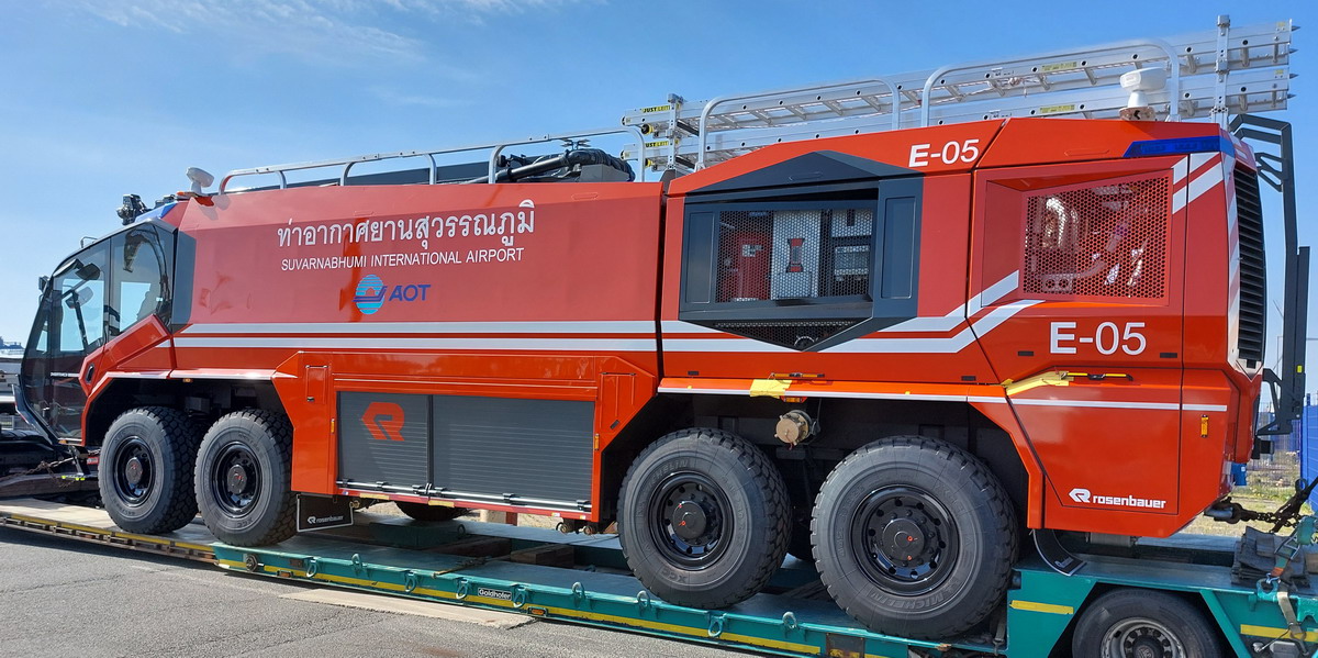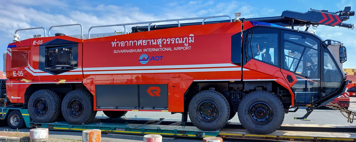 Der gelbe Rosenbauer Panther 6x6 auf dem Weg nach Saudi-Arabien mag für uns ungewohnt erscheinen, aber in einigen Regionen trägt die Feuerwehr kein rot.