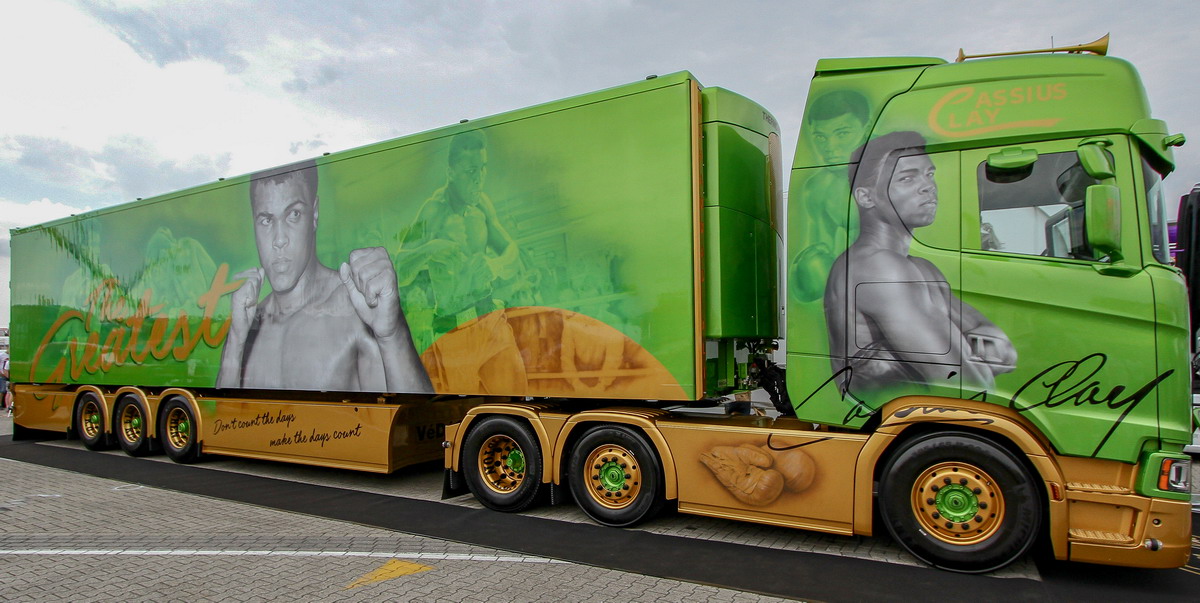 Airbrush und Chrom Bei diesem Longline Scania wurde mal richtig geklotzt und nicht gekleckert. Schon beim Blick auf die Front des Topline-Fahrerhauses...