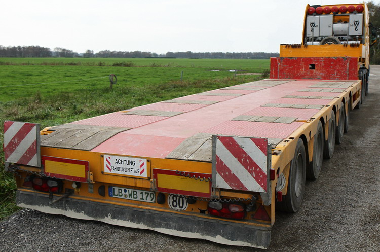 Gezogen wurde ein fünfachsiger Nooteboom-Auflieger.