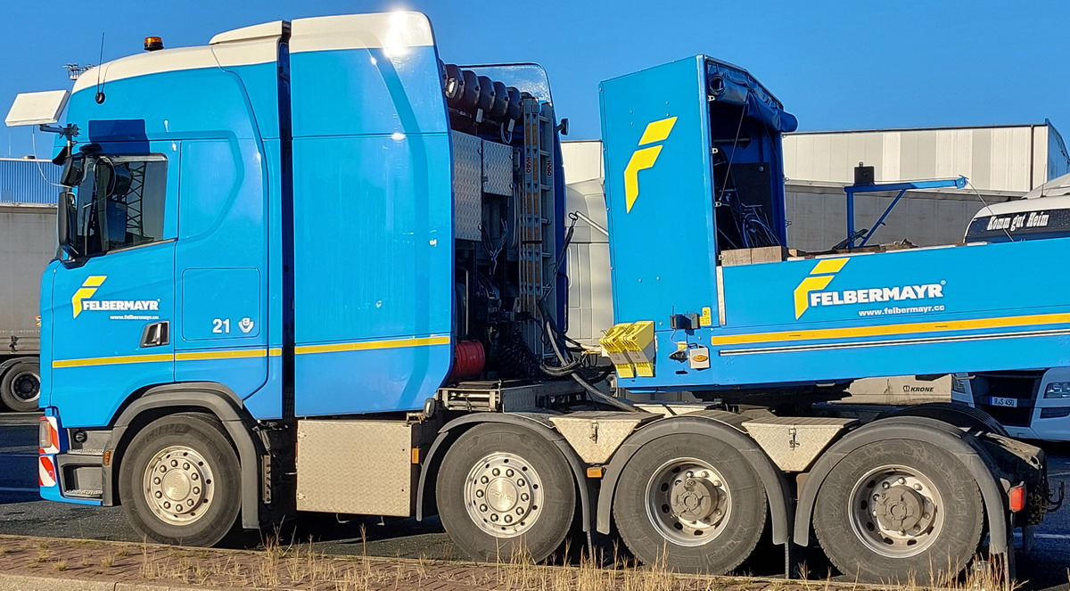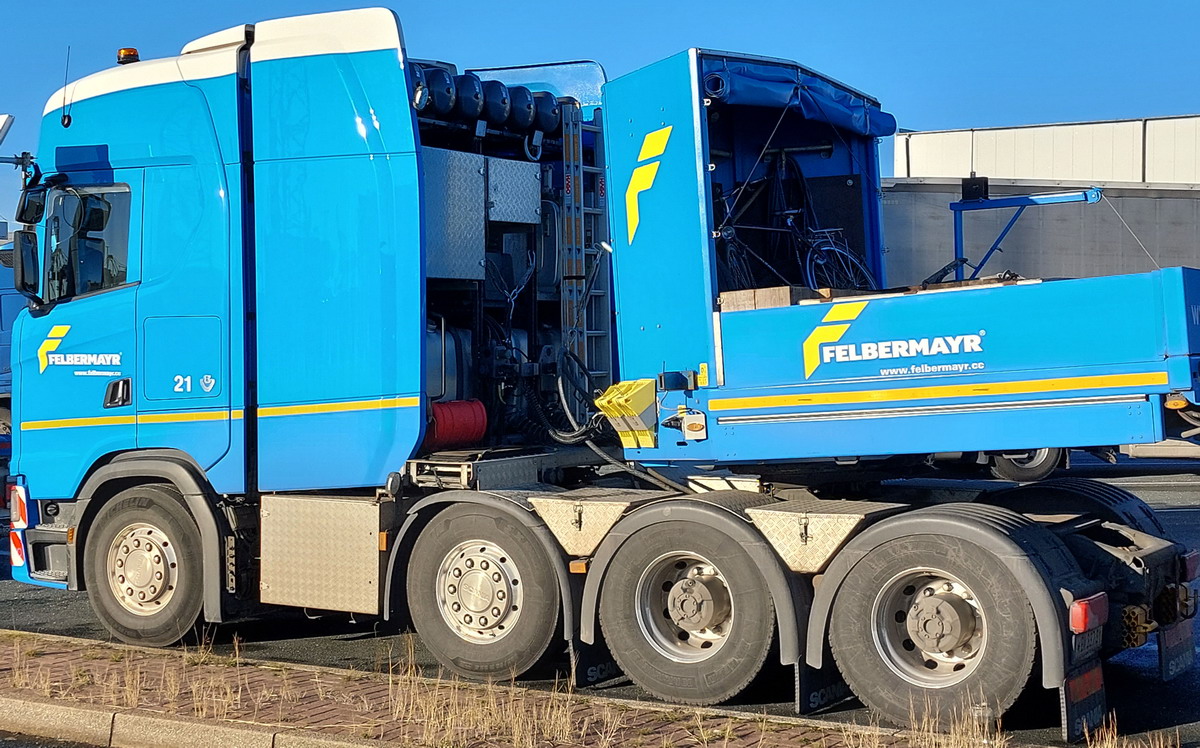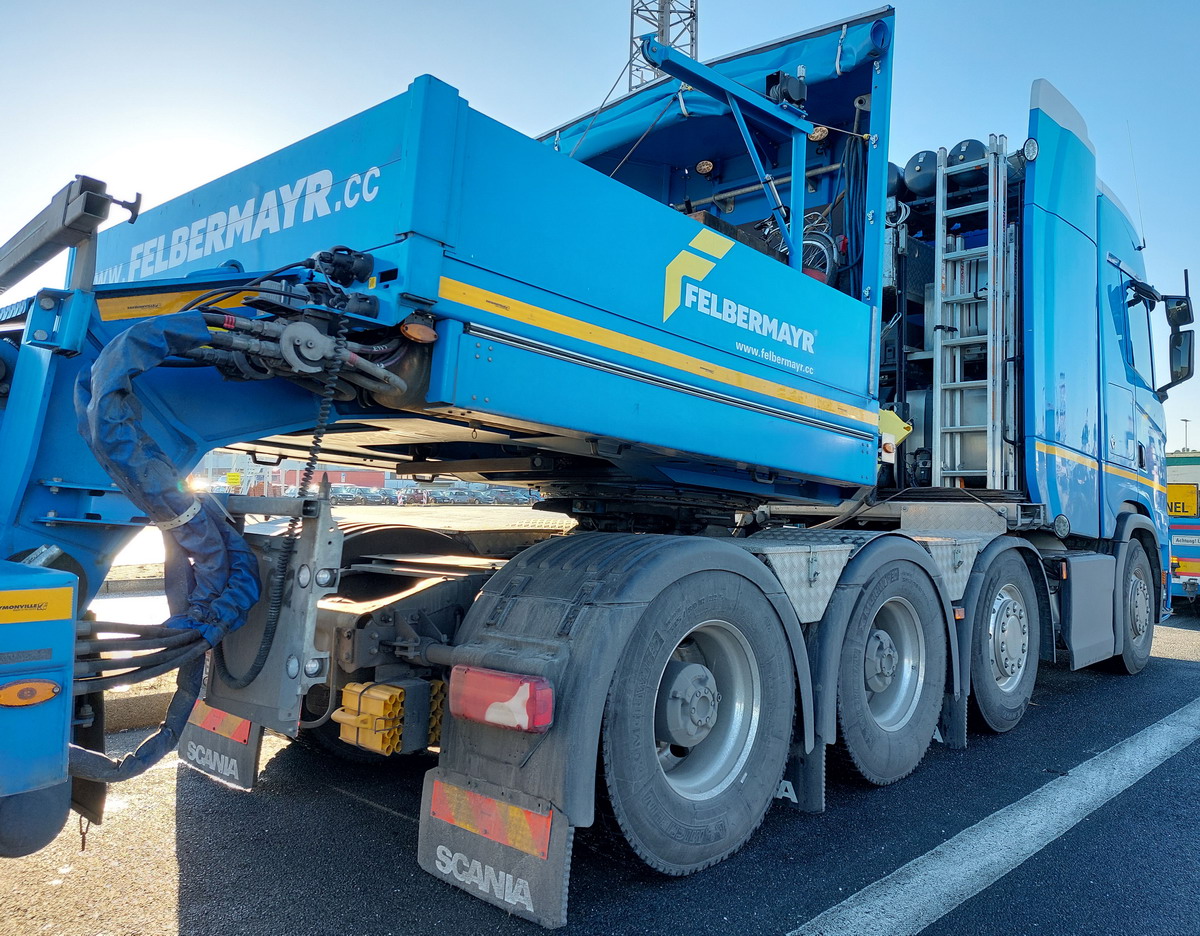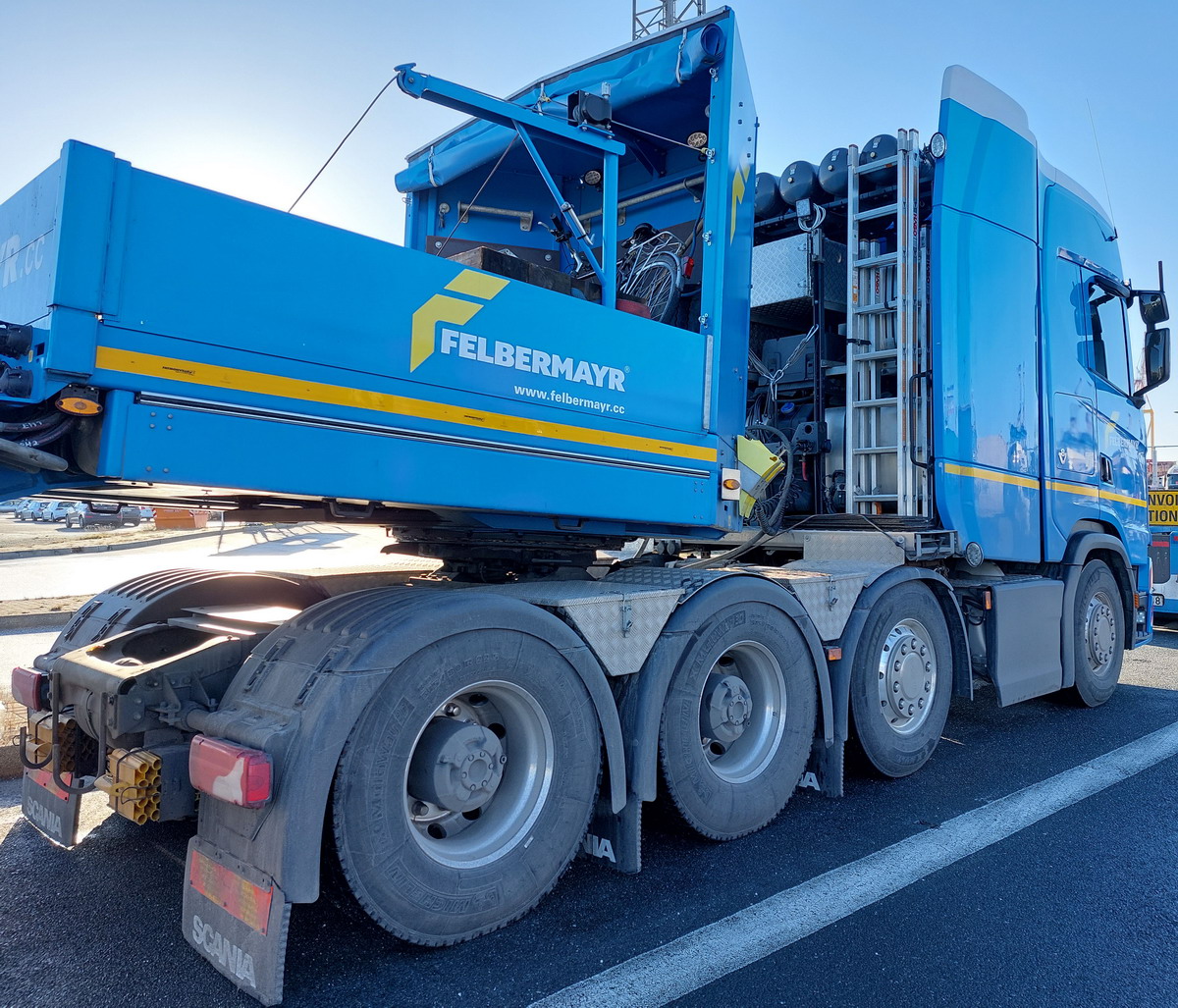 Mit dem 770 PS starken Scania 770S hat Felbermayr im Juni 2021 eine Weltpremiere in den Fuhrpark übernommen.