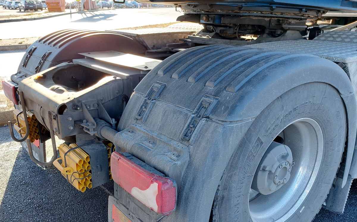 Das Eigengewicht der Zugmaschine ist mit 13.145 kg angegeben, die erlaubte Sattellast liegt bei 18.808 kg.