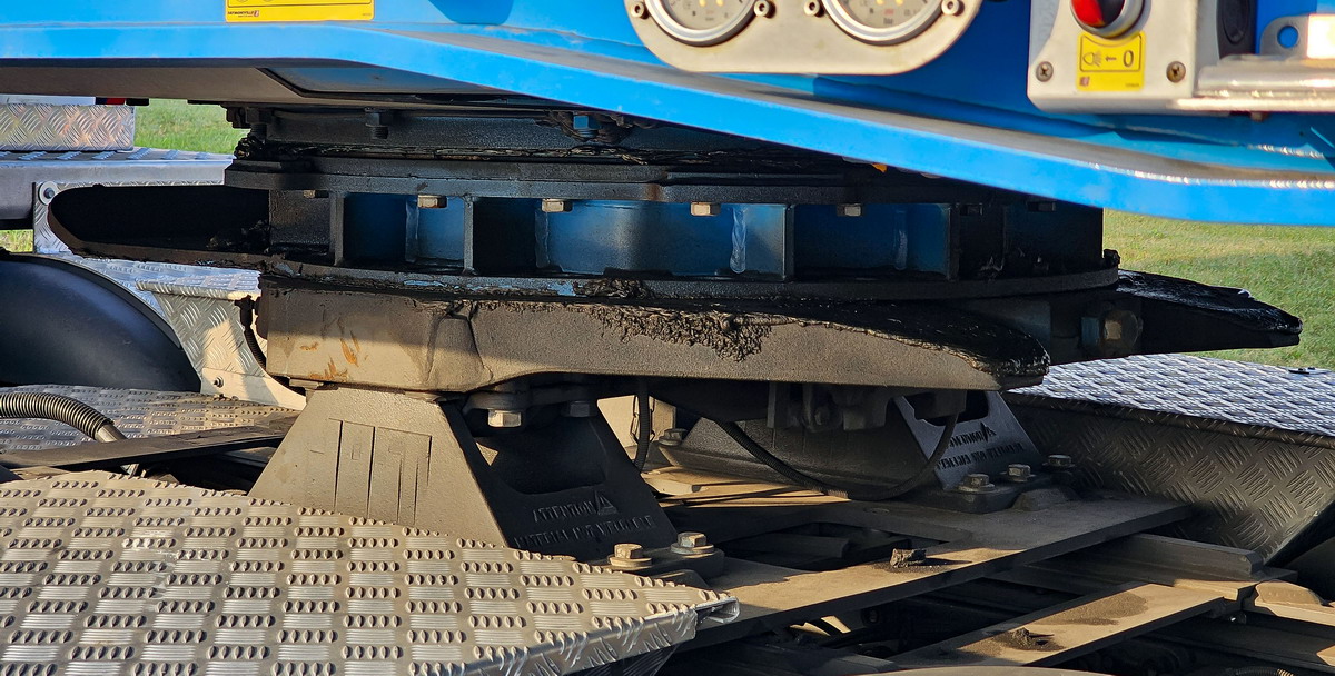 Die Hydraulik des Aufliegers wird über Anschlüsse auf dem Fahrzeugrahmen gespeist (ganz links).