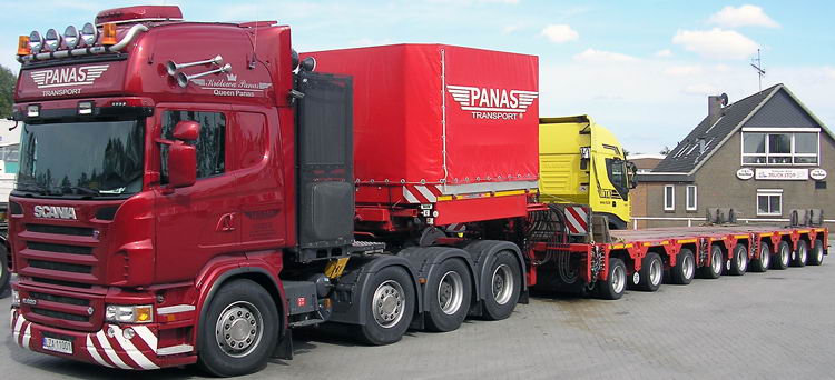 Halbhoch Mitte September 2011 machte dieses Bautrans-Felbermayr-Gespann in Bremerhaven Station. Auffällig bei dem recht neuen Scania ist der Einsatz des...