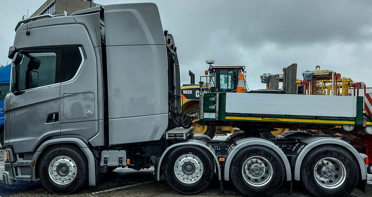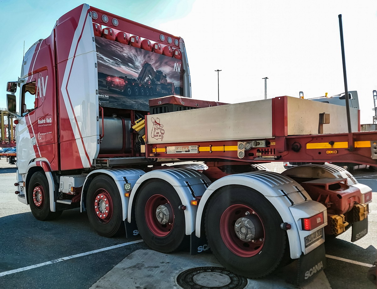 Leider kam ich etwas zu spät im Hafen an, um von diesem schicken Vierachser ein fettes Fotopaket zu erstellen. Wer die Wartezeiten aus der ersten Jahreshälfte 2021 im Bremerhavener Hafen kennt oder sogar ertragen musste, kann jeden Fahrer verstehen, der mit dem Erhalt der magischen Karte schnellstmöglich zur Entladung hinter die beiden Schranken am Einlass möchte. So erging es mir leider eben auch hier. Der Fahrer kam nach dem ersten Foto, ließ mich gewähren, musste sich aber auch sputen. Somit war nur Zeit für einige wenige Fotos des Scania R580 von André Voß.