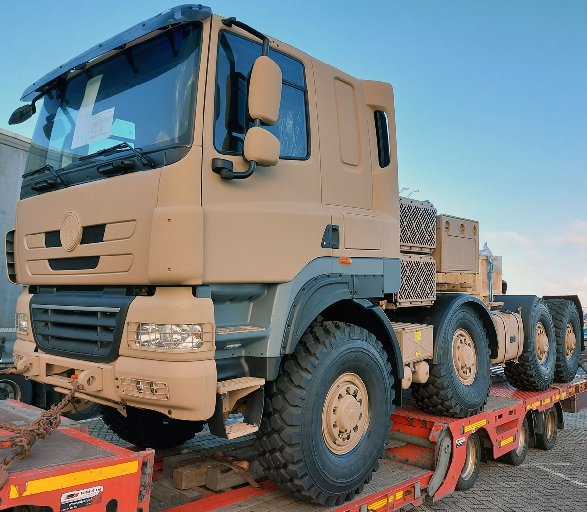 Für den Vortrieb sorgen nicht nur acht Geländereifen, sondern auch ein PACCAR MX300 Euro3-Motor.