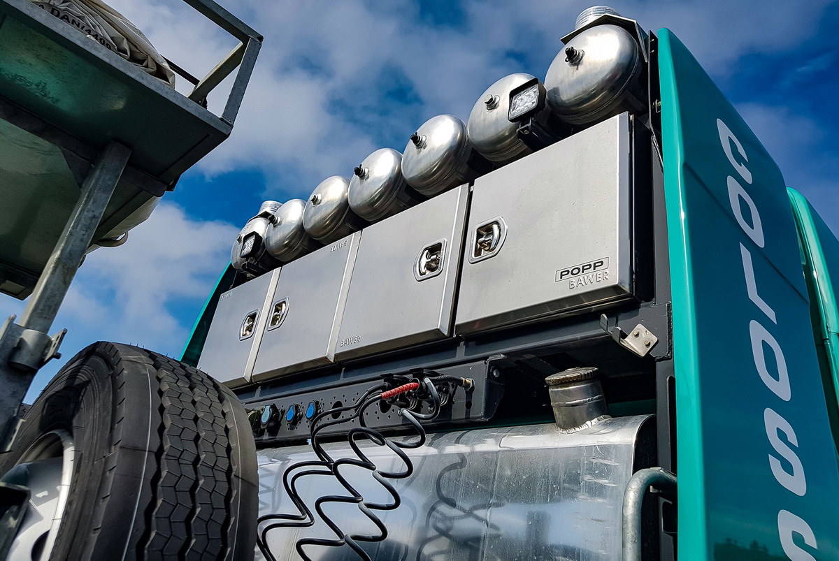 Unter dem Fahrerhaus werkelt der Motor mit 650 PS, also mit reichlich Leistung, aber nicht der kräftigste Reisser von Volvo.