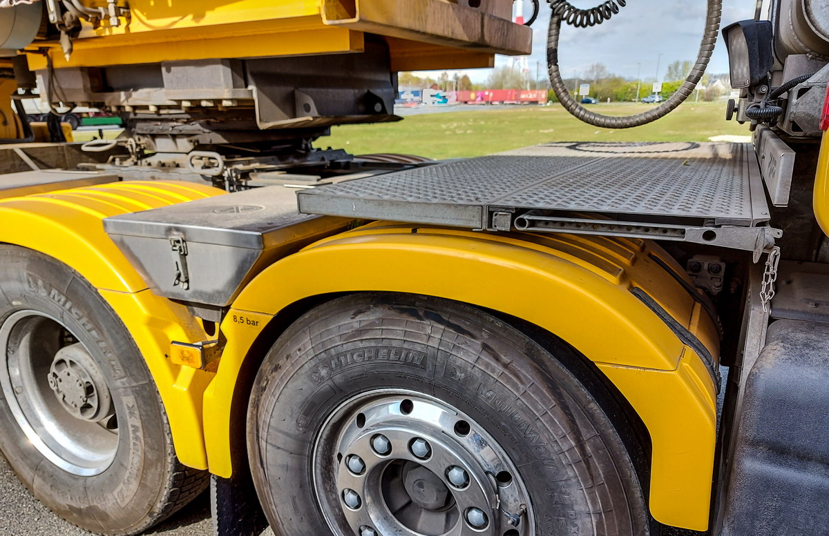 Trotzdem bleibt die Zugmaschine durch das strahlende Gelb ein unübersehbarer Eyecatcher.