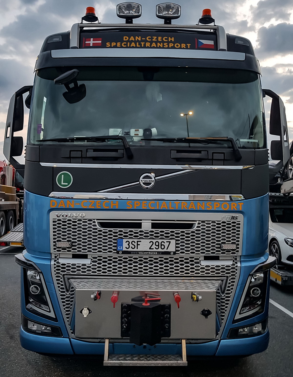 Dieser Kasten vor dem Kühlergrill ist wohl eine sehr spezielle Lösung von Dan-Czech Specialtransport.