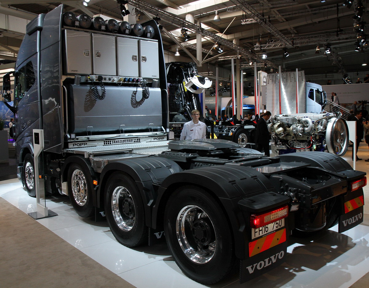 Auf der IAA 2018 zeigte Volvo auf den aktuellen Schwerlast-Vierachser in schlichtem Design.