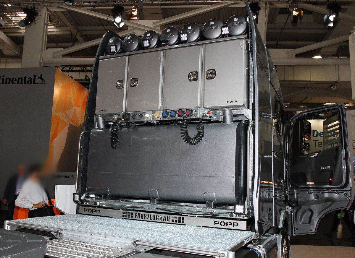 An beiden Seiten des Panels für die Aufliegerversorgung gibt es Einfüllstutzen für den großen Dieseltank.