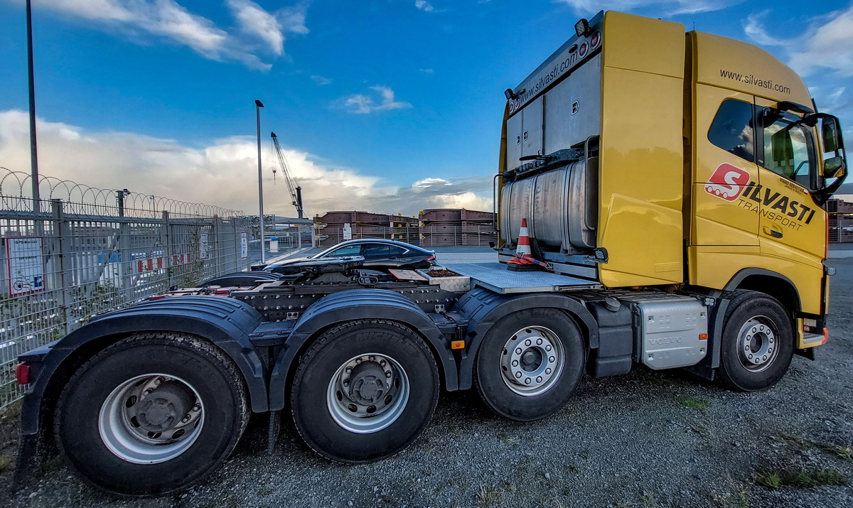 Auch dieser Volvo FH16 mit 750 PS von Silvasti musste vor der Schranke auf den Einlass zur Beladung warten.