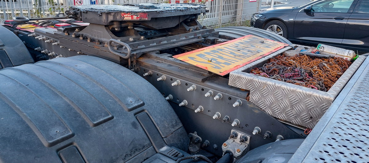 Schräg unter dem Batteriefach wurde diesem Vierachser eine zusätzliche Staubox spendiert.