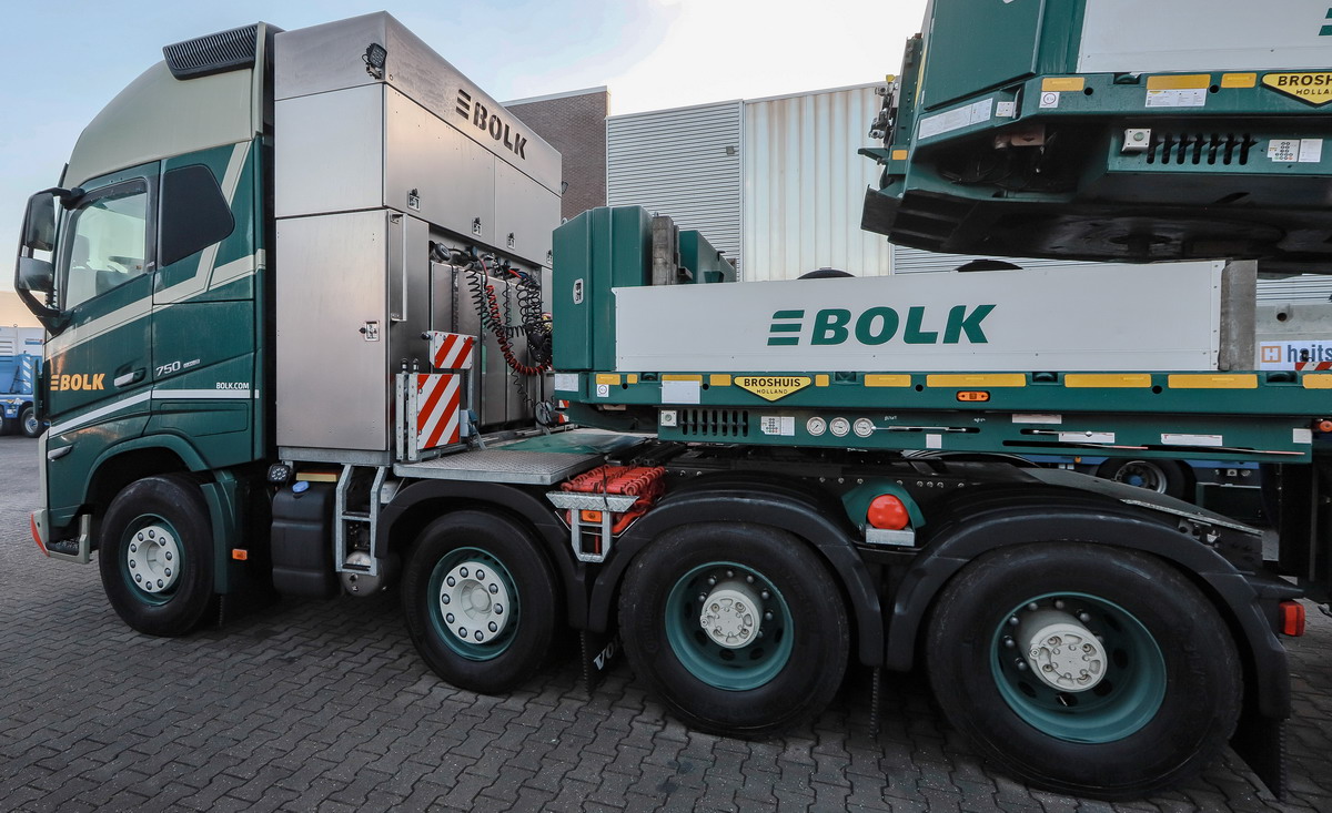 Als Zugfahrzeug kam ein Volvo der fünften Generation mit 750 PS von Bolk zum Einsatz.