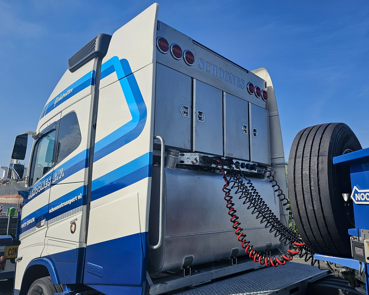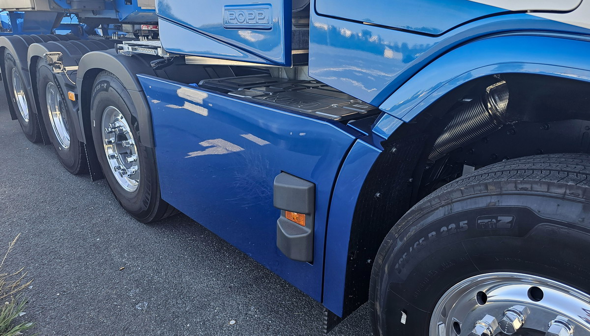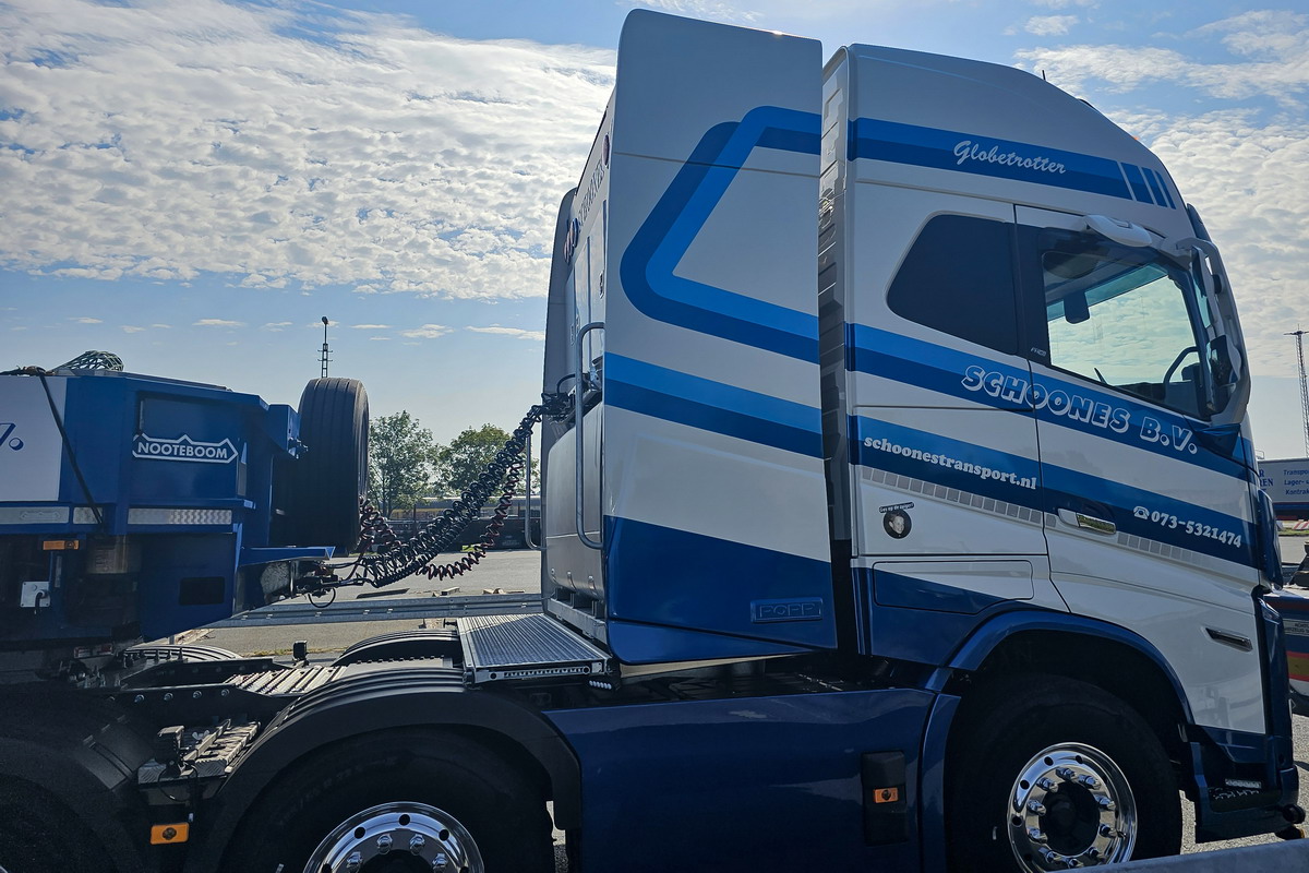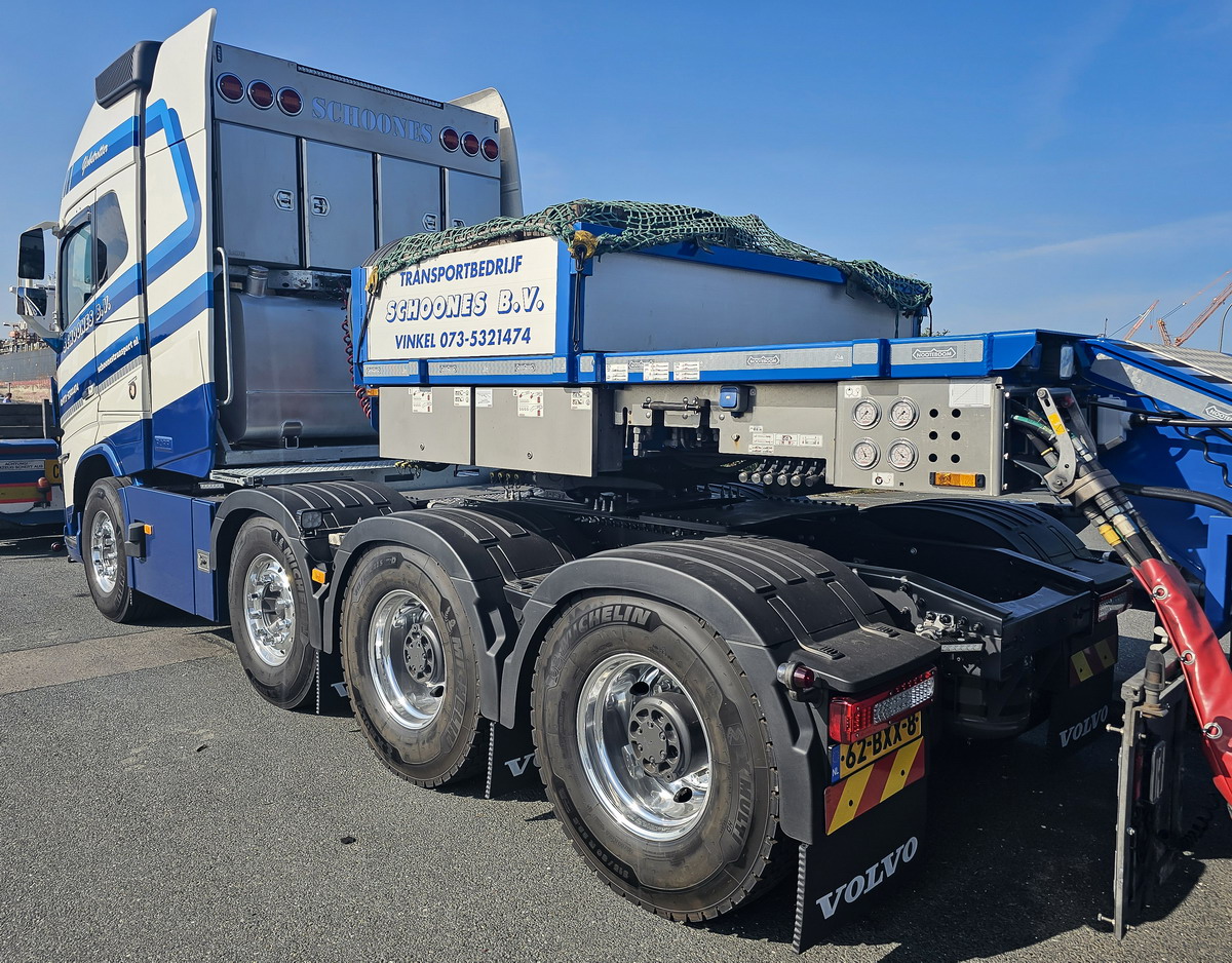 Beim vierachsigen 2024er Volvo FH5 mit 750 PS von VE-Log, ist es einfacher die obere Verkleidung des Turms zu betrachten.