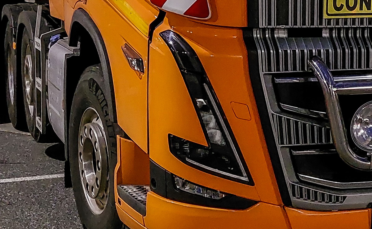 Ende März 2024 parkte dieser vierachsige Schwerlast-Volvo im Bremerhavener Hafen.