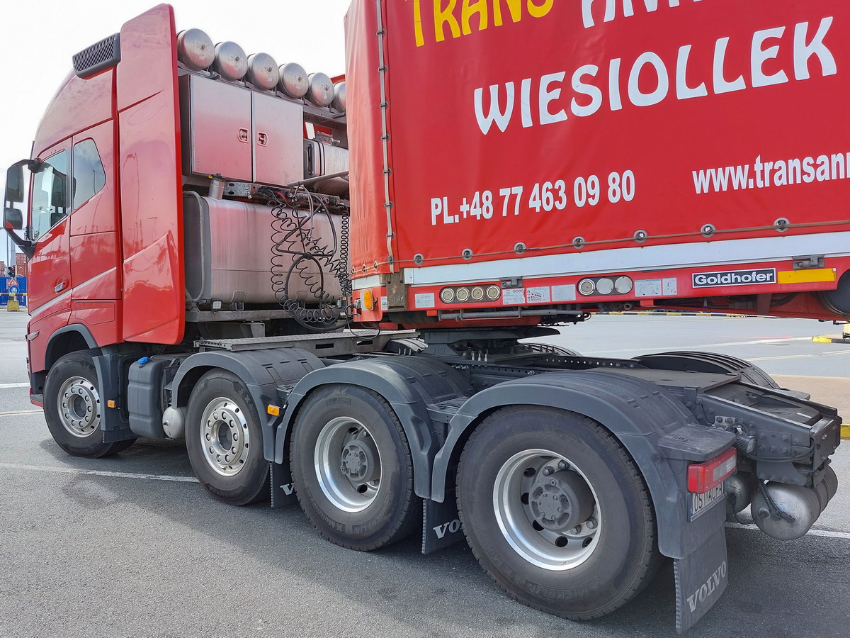 Ruhezeit Im Juli 2021 hatte dieses Gespann die Ladung schon im Hafen gelassen. Der vierachsige Volvo FH16 kommt ohne die typische Seitenverkleidung von...