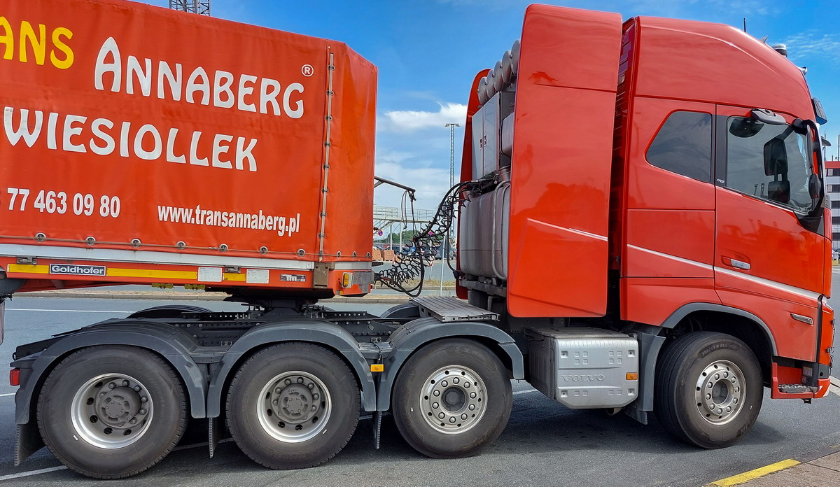 Im Mai 2022 parkte dieses beladene Gespann im Bremerhavener Hafen.