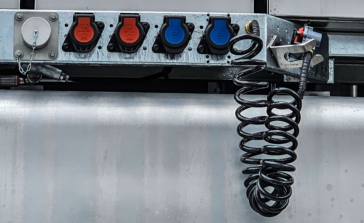 Der Hydrauliköltank für die Aufliegerversorgung versteckt sich in der zweiten Staubox von rechts.