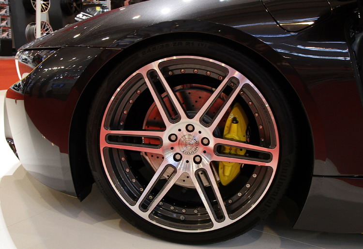 Auf der Hinterachse drehen sich 285/30 ZR 21er Gummis