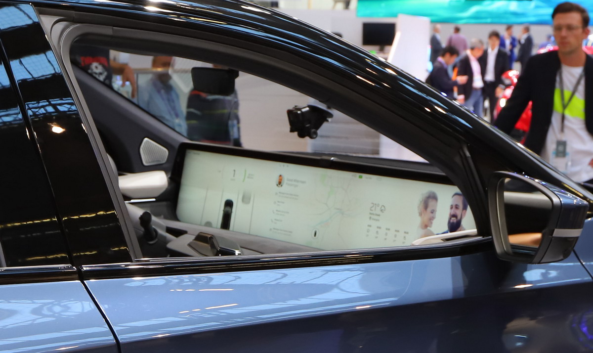 Ein gewaltiger 48-Zoll-Monitor reicht fast über die gesamte Fahrzeugbreite.