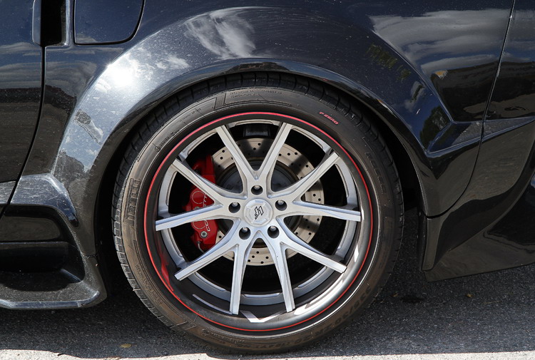 Die 335er-Gummis auf den 20-Zoll-Felgen werden mithilfe von Distanzscheiben ausgestellt.